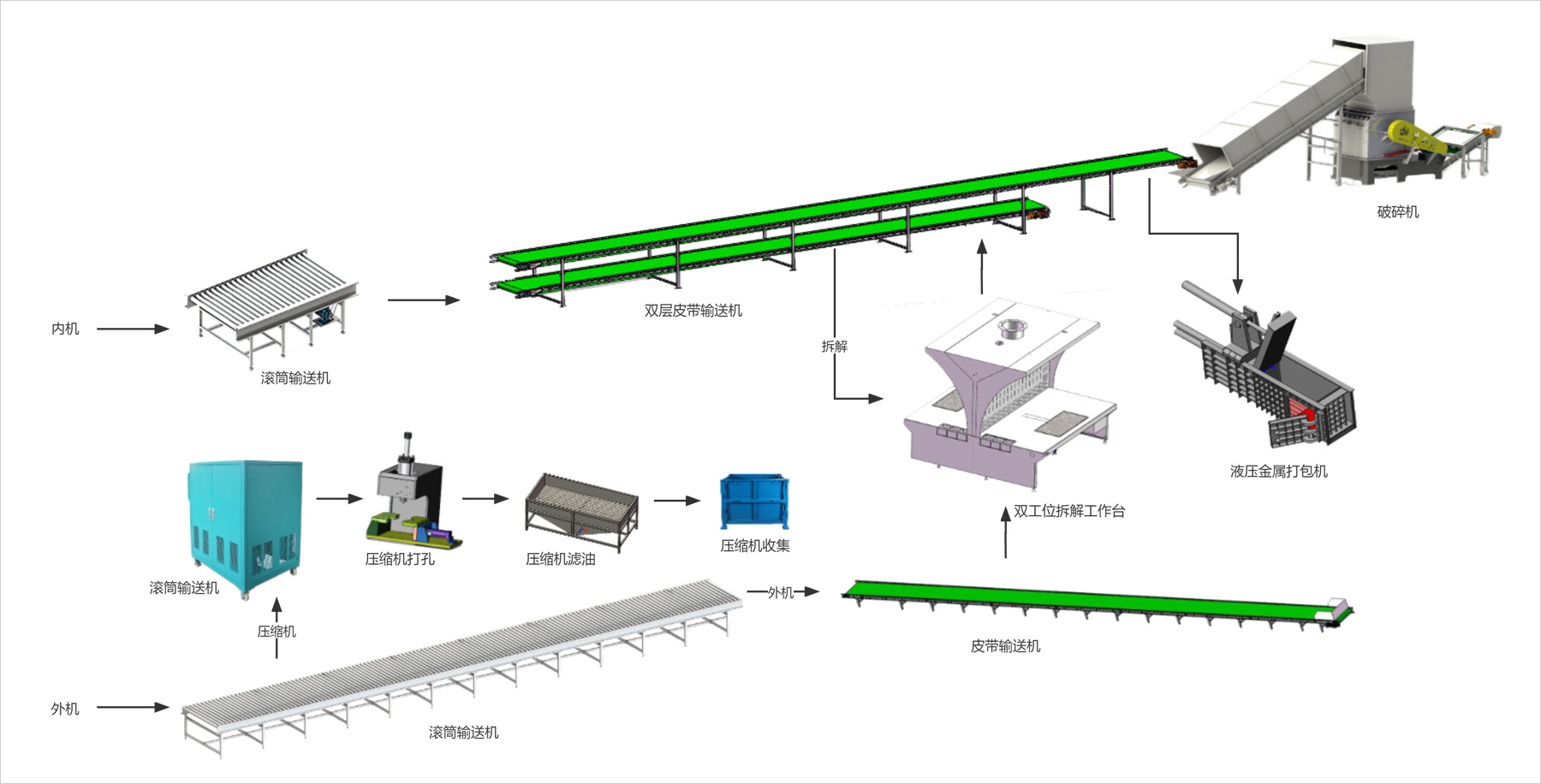 配套设备所有电气元件采用三菱/SMC/法国施耐德等进口品牌,配机电缆均采用国内一线品牌,符合国家强制标准。生产线分选铁回收率≥99.5%,塑料分选率≥98%。
