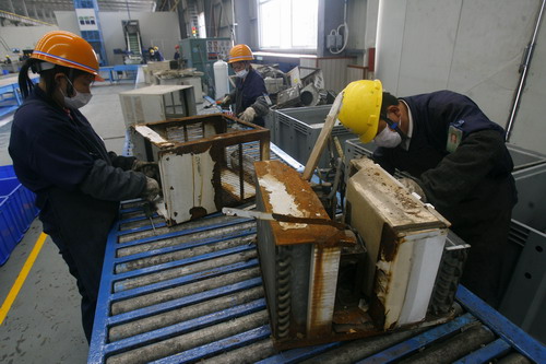简介:目前我国废旧家电的回收还是主要以落后的、作坊式的方式为主,私人作坊回收废旧家电的通常做法是对能够再利用的废旧家电经简单的维修整理后卖到二手市场;对于不能再利用的进行简单的拆解,回收其中的能利用的元部件,剩余的经过焚烧、酸洗浸泡方式回收贵金属,最后把没有价值的部分随处扔掉。这种回收方式工艺落后,对环境污染严重,且资源浪费严重。