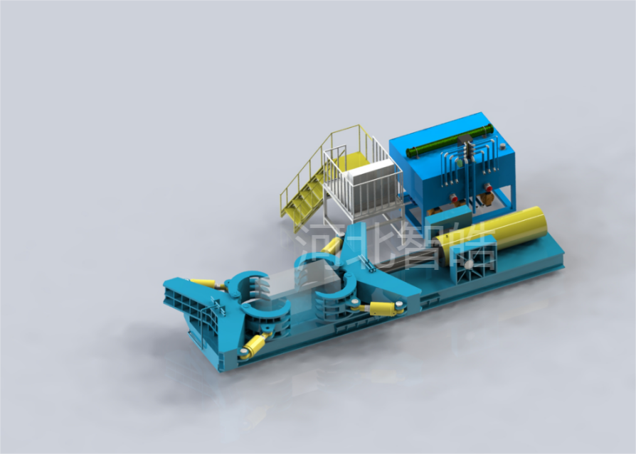 金属拆包机是通过液压柱塞泵向集成油路供油,经过分配手动阀向液压缸传送后,产生动力。压力可以根据实际不同情况调到需要的额定值(额定值大小由压力表显示)。金属拆包机通过液压机械手抓挤压分离,并通过多次分解,从而拆解包块。