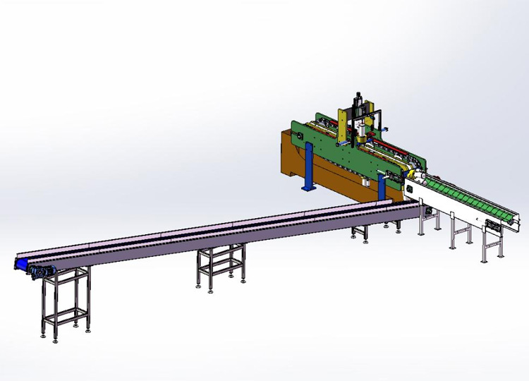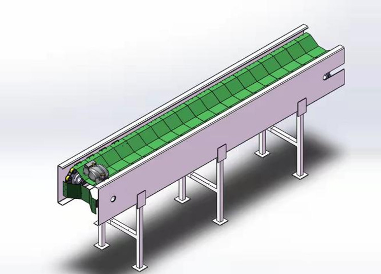 进料采用V型链板输送,压缩机不会在面板上滚动,保证了输送的稳定性,该输送装置实现了输送的自动化,提高了工作效率,是一种高效的输送装置。
